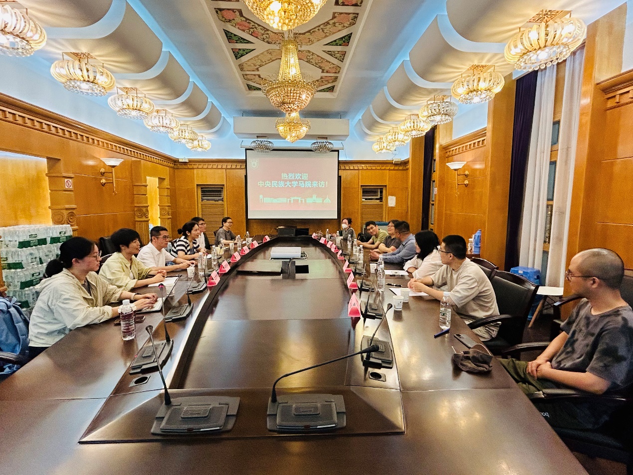 6月24日下午,中央民族大学马克思主义学院马克思主义基本原理教研中心师英杰主任率队来我院考察调研。我院副院长吴翠丽教授、马克思主义基本原理教研室主任孔智键和青年骨干教师们在鼓楼校区树华楼参加了此次座谈交流会。