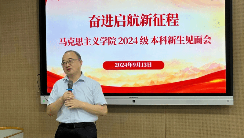 吴翠丽老师从人才培养原则、方案制定历程、课程设置特色以及人才培养目标等方面为与会师生介绍我院本科生培养方案。吴老师叮嘱同学们在大一学年充分用好通识教育模式的资源,夯实基础、拓宽视野,为日后专业学习打下良好基础,在大学四年里能够学有所成、学有所得。本学年,学院继续聘请三位新生导师为同学们的大一生活保驾护航。来自中国近现代史纲要教研室的聂平平老师希望新生同学们珍惜青春韶华,在一步步的学习探索中做好大学生涯规划,处理好集体生活中的人际关系,平衡好课业学习和身心健康的关系,做热爱生活、积极向上的新南大人。马克思主义中国化教研室金文老师作为南大马院的首届博士生,以“学长”的身份问候新同学。他建议同学们重视理论学习,广泛参与丰富多样的课程、讲座与学术会议,常去图书馆、常逛资料库,不断提升综合素质、完善自我。马克思主义基本原理教研室尤歆惟老师结合自身海外求学经历,和大家分享学科交叉的重要性。他提倡同学们在学习中,要克服学科偏见,努力培养思考问题的综合性视域。尤老师还提醒同学们重视体育锻炼,将五育并举长期贯彻下去。2022级本科生刘阮卿以朋辈学姐的身份,分享了她入读南大马院两年来的真切感受。海外访学、科考实践、论坛发言……她用一件件精彩纷呈的学习经历向同学们展现着大学生活的无限可能。她鼓励学弟学妹打破信息差、抓住机会、勇敢迈出“第一步”,尽可能体验大学生活的多元面向,在充满不确定的世界里让自己更有方向感、有选择权。本次活动是学院积极响应学校“本科新生日”的重要育人举措。通过搭建师生双向交流平台,新生进一步加深了对本专业的认识与理解。“俱怀逸兴壮思飞,欲上青天揽明月”,祝愿2024级本科新生顺利开启大学之旅,用汗水浇灌收获,用实干笃定前行,用激扬着的青春接下来的大学生活中坚定理想信念,不负青春韶华,奋力“到中流击水,浪遏飞舟”!
