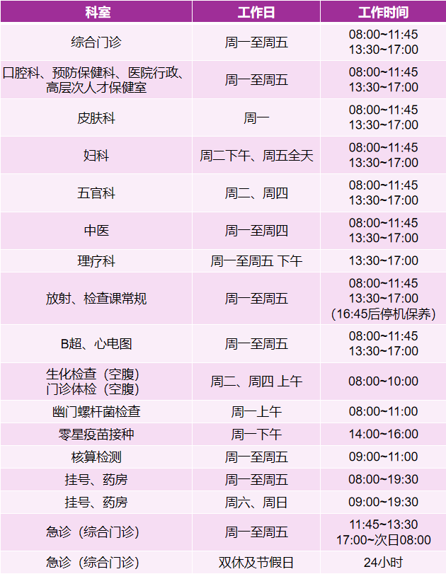 校医院,开学体检的场所,也是医疗保险报销时需要跑的地方,可关注其微信公众号“南京大学医院”。另外学校里还有一个医学院,二者易混淆。校医院正常开放时间如下: