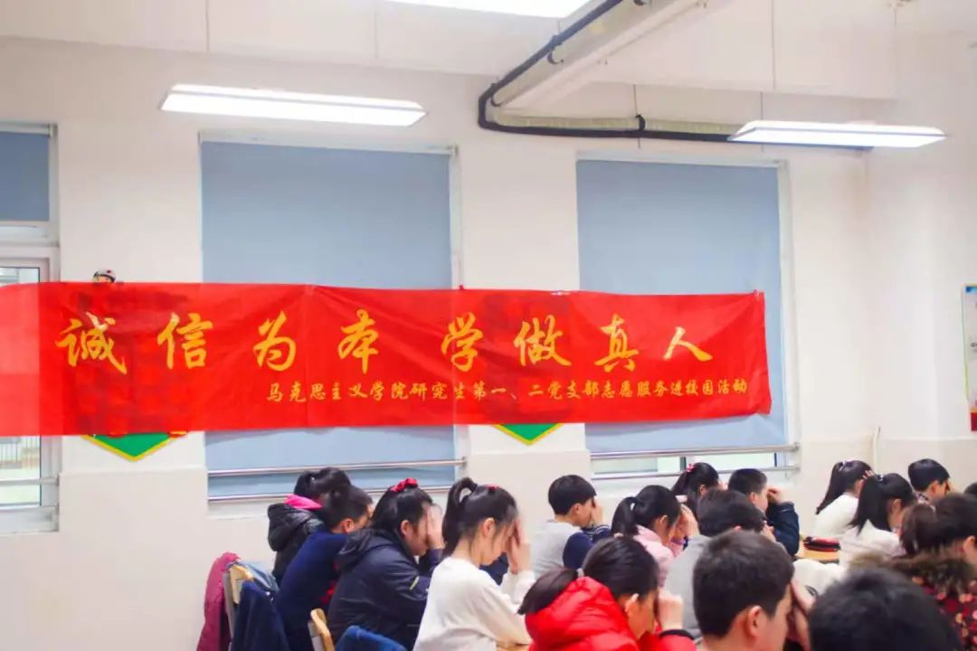 为响应党中央“参加一次志愿服务,为身边群众至少办一件实事好事”的号召,增强全体党员的奉献意识和责任意识,马克思主义学院研究生第一党支部、第二党支部在主题教育期间积极开展了丰富多彩的系列志愿服务活动。本次进校园主题宣讲正是活动第一期,由马克思主义学院研究生第一党支部书记崔兴红牵头,第一党支部统战委员杨继水为组长,一二支部成员共同策划完成。在前期充分的准备下,2020年11月26日下午,马克思主义学院研究生志愿服务第一小组前往南京市芳草园小学开展以“诚信为本,学做真人”为主题的志愿服务活动。