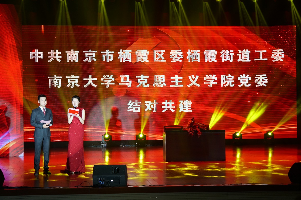 签约仪式上,马克思主义学院党委书记王建华与栖霞街道工委书记姚学敏代表双方,正式签署共建协议书。