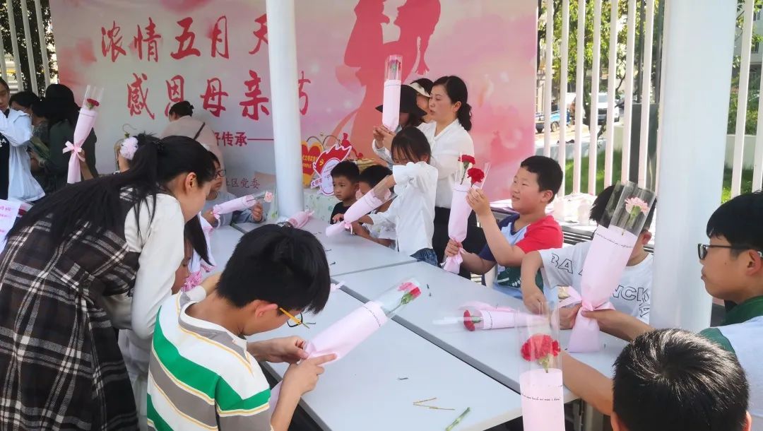 最后一个环节是为母亲送上亲手制作的花束。小朋友们巧手慧心,在社区老师的示范和志愿者的协助下,一支支漂亮的花束新鲜出炉。大家手捧着自己的得意之作,洋溢着满足感与成就感。在镜头面前,他们将这份承载着感恩之心的礼物送给了母亲,双方紧紧相拥,每个人的脸上都绽放出幸福的笑容。