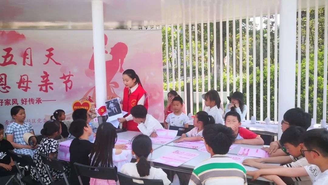 中华传统美德是中华文化的精髓,孕育了中华民族的宝贵精神品格,培育了中国人民的崇高价值追求。为进一步贯彻落实党的二十大精神,弘扬和传承中华民族传统美德,培育青少年正确的孝德观、自觉感恩慈母心,5月14日,南马微芒志愿服务队联合青田雅居社区开展了形式丰富的母亲节活动。来自中国近现代史基本问题研究专业22级硕士生郭建琪担任本次活动的主讲人。