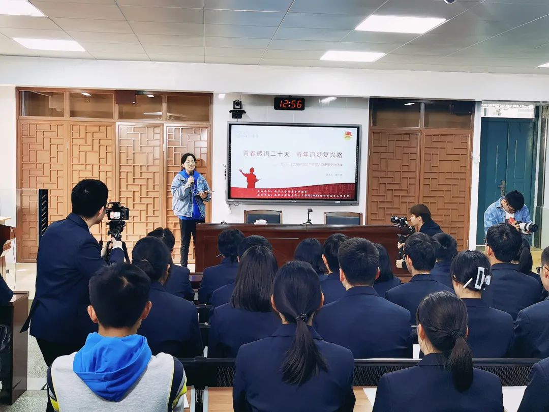 为认真贯彻落实习近平总书记关于抓好青少年学习教育,让红色基因、革命薪火代代传承的重要指示精神,培育广大青少年学生在心中厚植爱党、爱国、爱社会主义的情感,2023年4月27日下午,马克思主义学院2021级硕士生第二党支部前往南京大学附属中学开展党史宣讲活动。支部成员夏好捷同志作“青春礼赞新时代,青年追梦复兴路”主题宣讲,南大附中入团积极分子与我院2021级硕士生第二党支部部分成员参加本次活动。