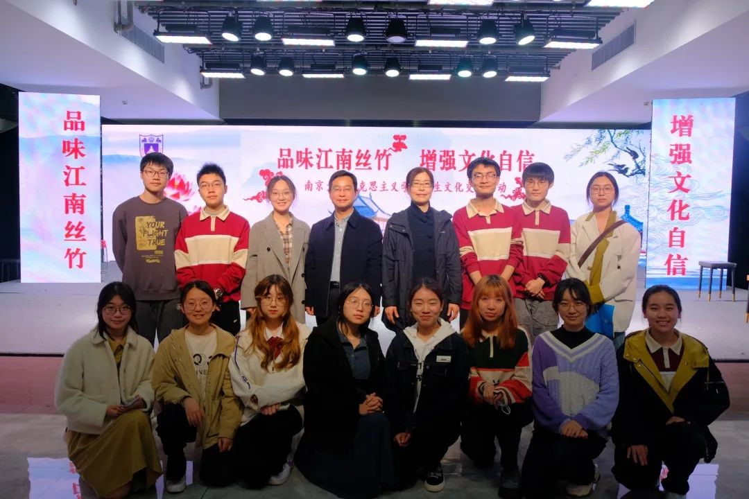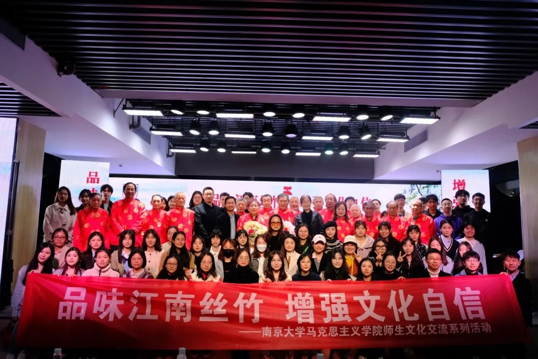 “秦淮碧波荡漾,丝竹古韵悠长”。为深入学习贯彻党的二十大精神,弘扬中华优秀传统文化,提升美育素养,增强文化自信,3月12日下午,在我院2022级本科新生导师暴庆刚、戴雪红两位教授的精心策划和带领下,来自本硕博多年级的八十余人齐聚南京市秦淮·非遗馆,共同欣赏南京市非物质文化遗产江南丝竹专场音乐会,并参观非遗馆,了解南京“非遗”文化。本场音乐会由中国四大乐社之一的南京乐社江南丝竹乐团演奏,甘熙故居一代民乐大宗师甘涛先生之子、著名二胡演奏家甘梵先生和著名扬琴演奏家李家振先生领衔,秦淮·非遗馆副馆长江楠先生莅临本次活动。