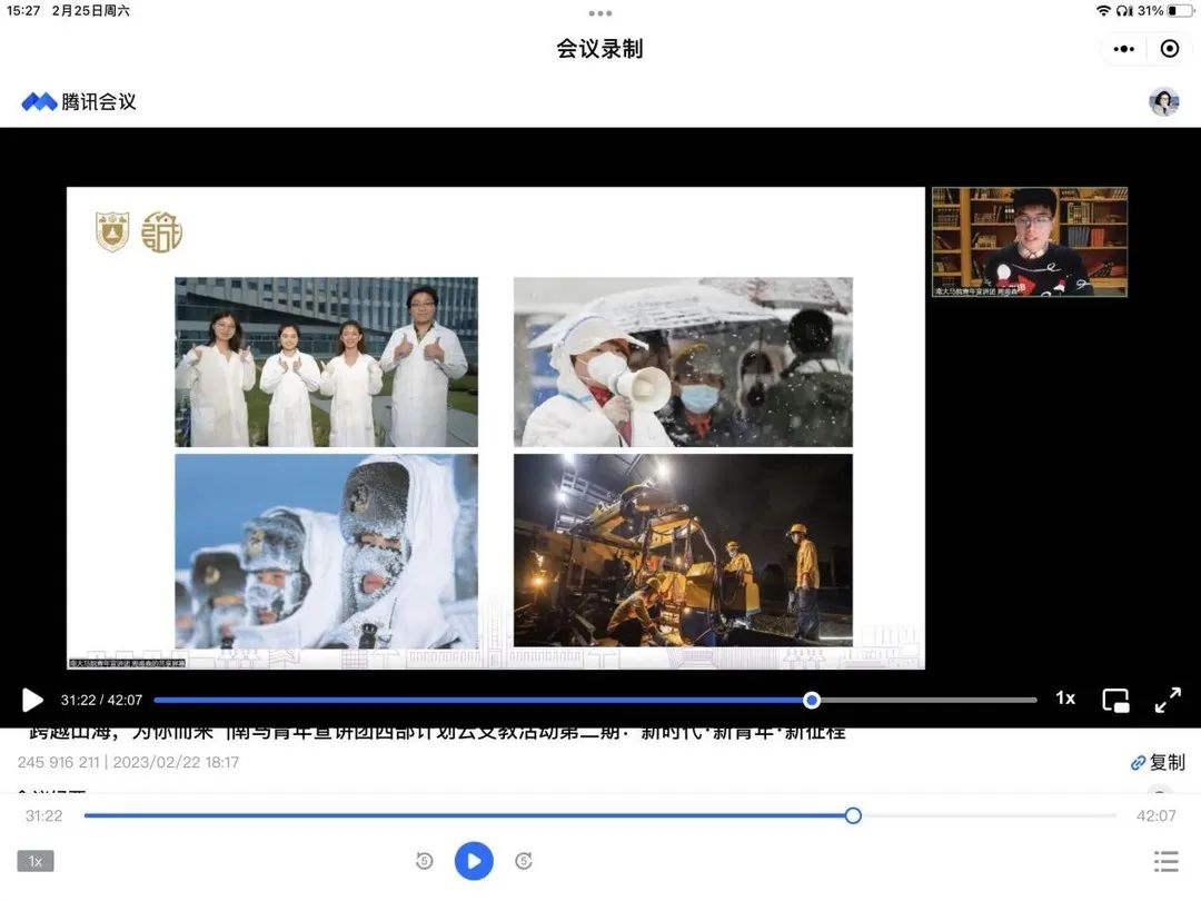 本次云支教活动在一片欢声笑语中圆满结束,在收获同学们好评的同时,对于青少年树立正确的人生观、世界观、价值观起到了良好作用,为青少年确立人生目标提供指引。新时代新征程,南马青年将把环球体育网官网中国网站首页祖国大地上催人奋进的动人故事带进西部课堂,为青少年播撒理想的种子、收获成长的果实,让奋斗的基因融入青少年血脉。