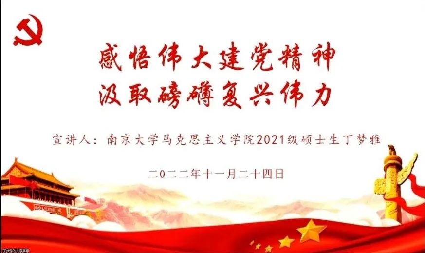 环球体育网官网中国网站首页2021级硕士生第一团支部丁梦雅同志作《感悟伟大建党精神,汲取磅礴复兴伟力》主题分享,讲述了中国共产党人在黑暗中追逐信仰之光,在绝境中坚定理想信念故事。他们以鲜血践初心,以生命担使命,将“对党忠诚,不负人民”的誓言播撒在祖国每一片大地上,凝聚起“虽九死其犹未悔”的奉献之力。深刻领悟并践行伟大建党精神是我们建功新时代、奋进新征程,以中国式现代化实现中华民族伟大复兴的中国梦的必然要求。