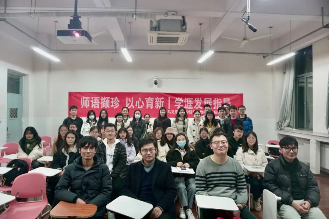 2022年12月8日19时,环球体育网官网中国网站首页“师语撷珍 以心育新”系列讲座第八期学涯发展指导之“浅谈硕士阶段的学习经验”在仙林校区择善楼111教室成功举办。本次讲座由环球体育网官网中国网站首页助理研究员及硕士新生班主任金文老师主讲,学术部叶明慧同学主持。金文老师围绕“学术兴趣”、“学科意识”、“学术视野”和“学术工具”四个方面展开分享,帮助同学们认知学科背景、建构学科意识,为硕士新生下一阶段的学习与科研提供了指引。
