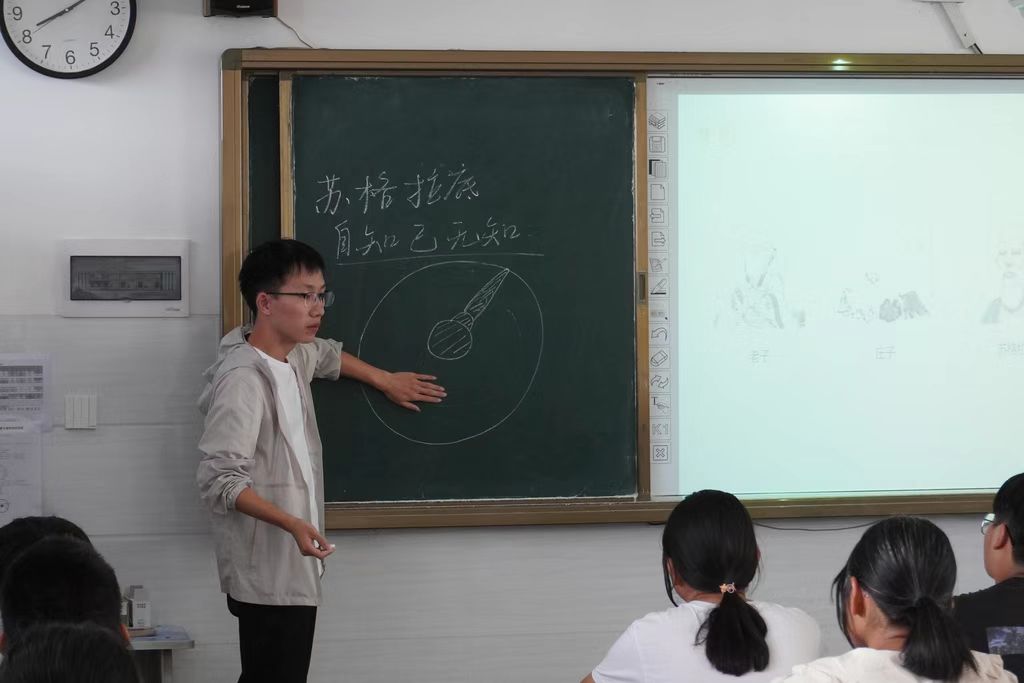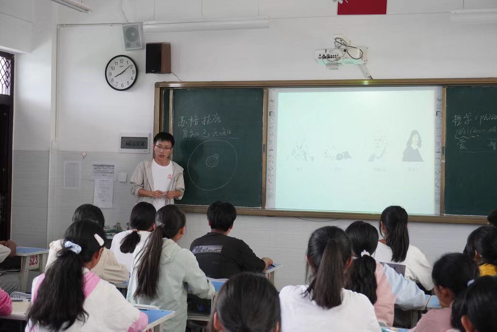 张显玉:此次支教活动中我主要负责的是课程是《哲学启蒙与心理团辅》。我最大的感受就是,其实上课真的没有我原来想象中的那么简单。比如说,我课前准备了很多内容,设计了很多环节,但是上课的时候我很难把握上课的节奏,所以导致第一节课的既定内容可能要放到第二节或者之后再说。