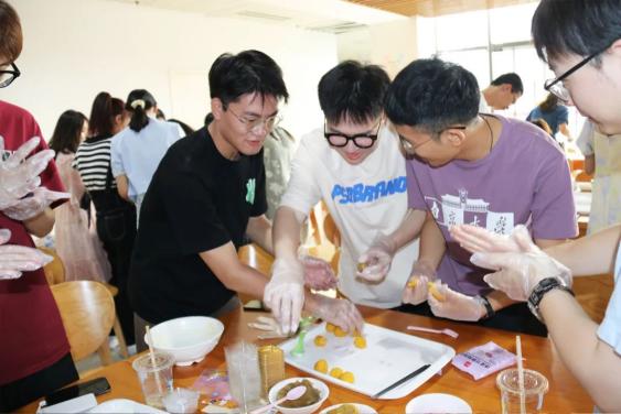 接着,有的同学用食品粉DIY出了“南大紫”、“火龙果红”、“淡雅黄”等饼皮配色,各小组间也交换模具并相互展示自己的成品月饼,场面融洽和谐,大家的脸上都洋溢着开心的笑容。手作冰皮月饼,不仅增进了同学间的脉脉温情,还包进了欢声笑语。在南大马院这个大家庭里,总有人和你共揽秋夜一轮月,共品中秋一味香。