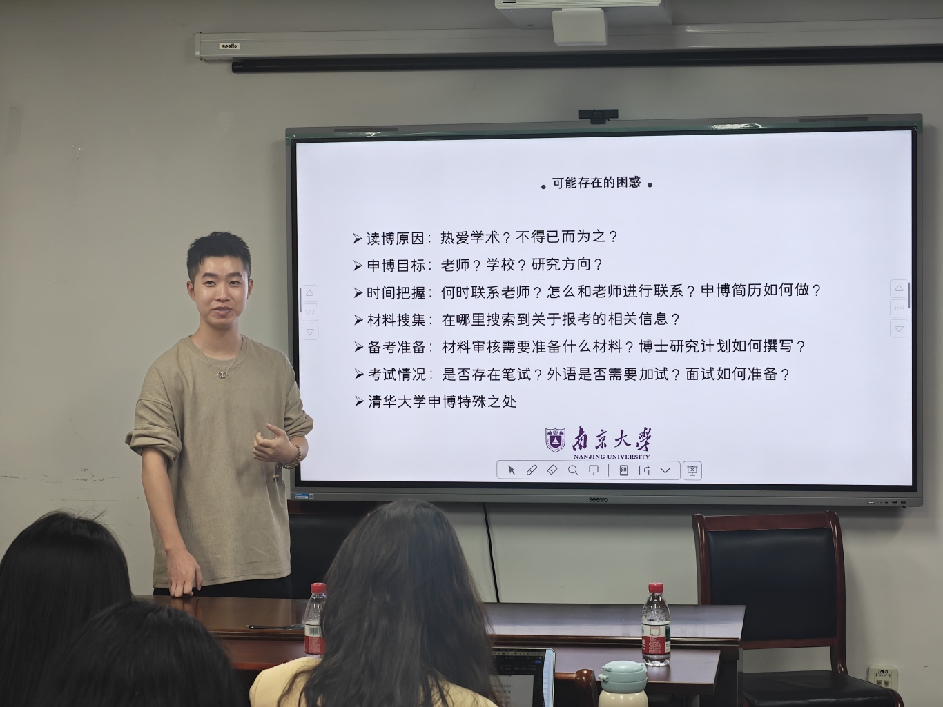 张鹤怡以自身跨专业申博的成功经验为核心,强调既要关注对自身学术能力、应试技巧的培养,也要注重材料准备的细微之处。在学术积累上,她分享了“经典教材+原著精读+真题导向”的递进式学习方法,即通过反复研读《马克思主义发展史》等教材,对照《德意志意识形态》等原著深化自身理解,并针对性地提炼目标院校真题高频考点。