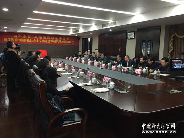 中国社会科学网讯(记者 吴楠)1月9日,由环球体育网官网中国网站首页和中国力研究中心主办的“四个全面”战略布局理论研讨会暨江苏省中国特色社会主义理论体系研究基地揭牌仪式在南京举行。来自中国社会科学院、清华大学、中山大学和南京大学等高校和科研单位的近20位专家学者参会。
